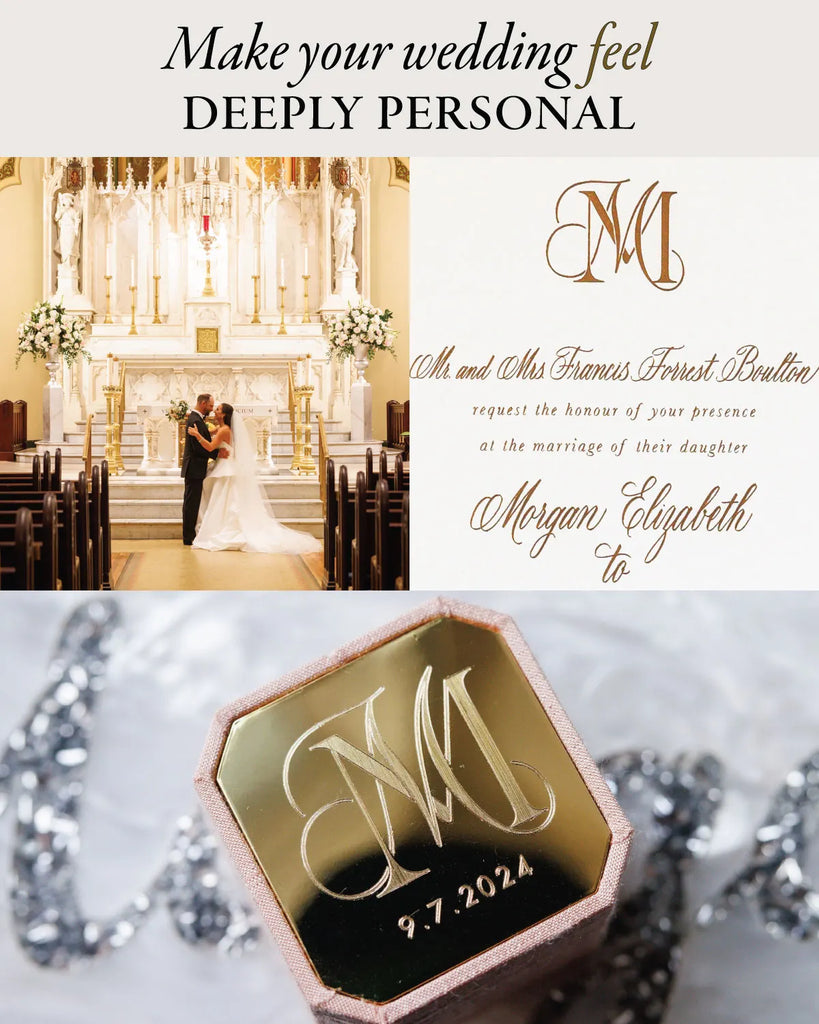 This elegant monogram brings a personal, beautifully cohesive touch to your wedding. Intentionally hand-lettered, it creates a signature look the moment your initials appear across every detail—from invitations to your dance floor.