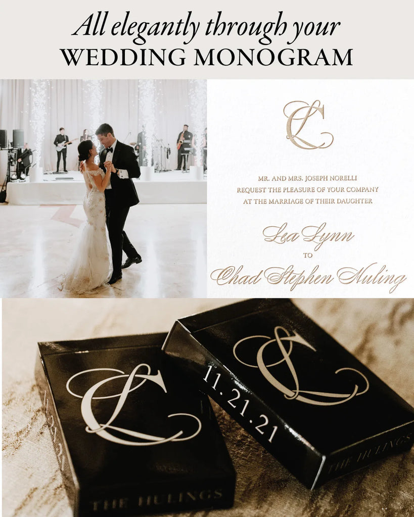 Each file is designed to translate beautifully across refined finishes—letterpress, engraving, foil stamping, laser cutting, embroidery, light projection, and large-format vinyl printing for dance floors. Your monogram preserves its elegance and exquisite detail in every application.
